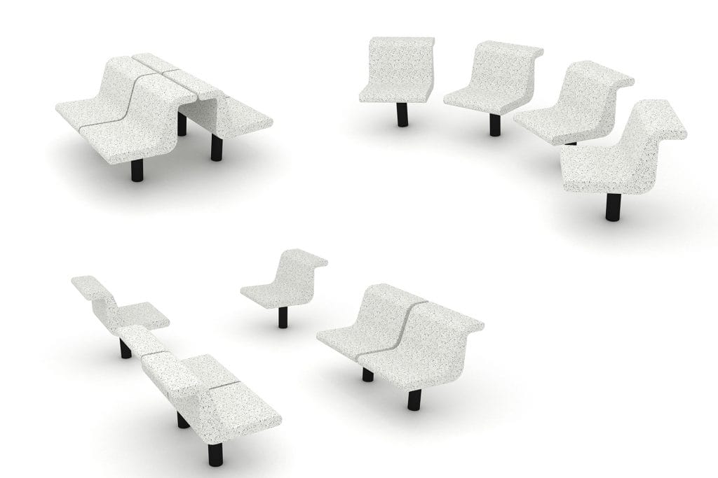 Its modular configuration allows the layout to change and adapt to the specific needs of different parts of the promenade.